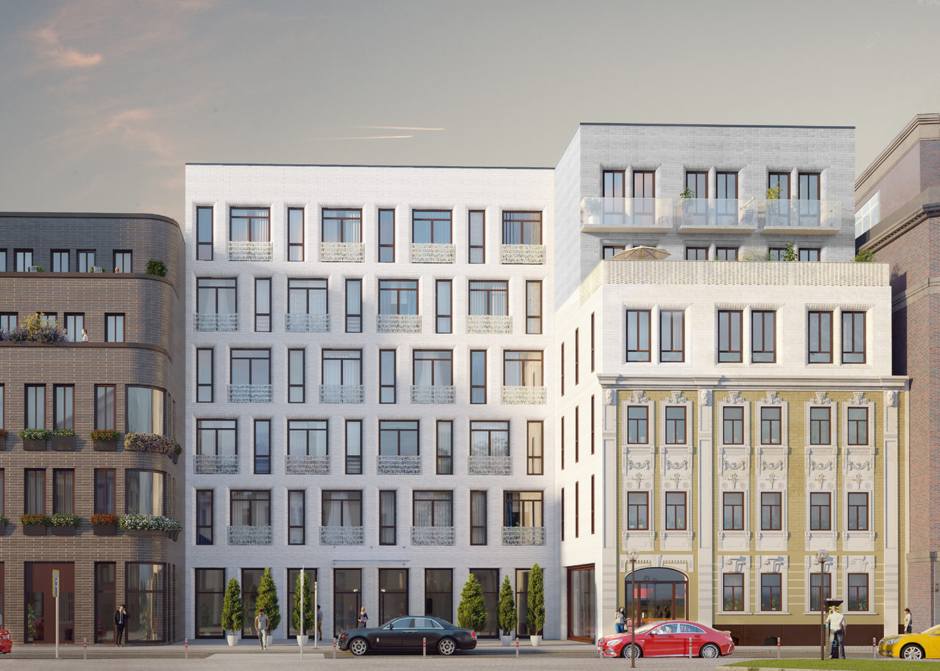 Part Rainier с историческим фасадом и лепниной, в центре – Part Albert c белоснежной перламутровой облицовкой и витражным остеклением и Part Mogambo - шоколадного цвета с открытыми террасами.
